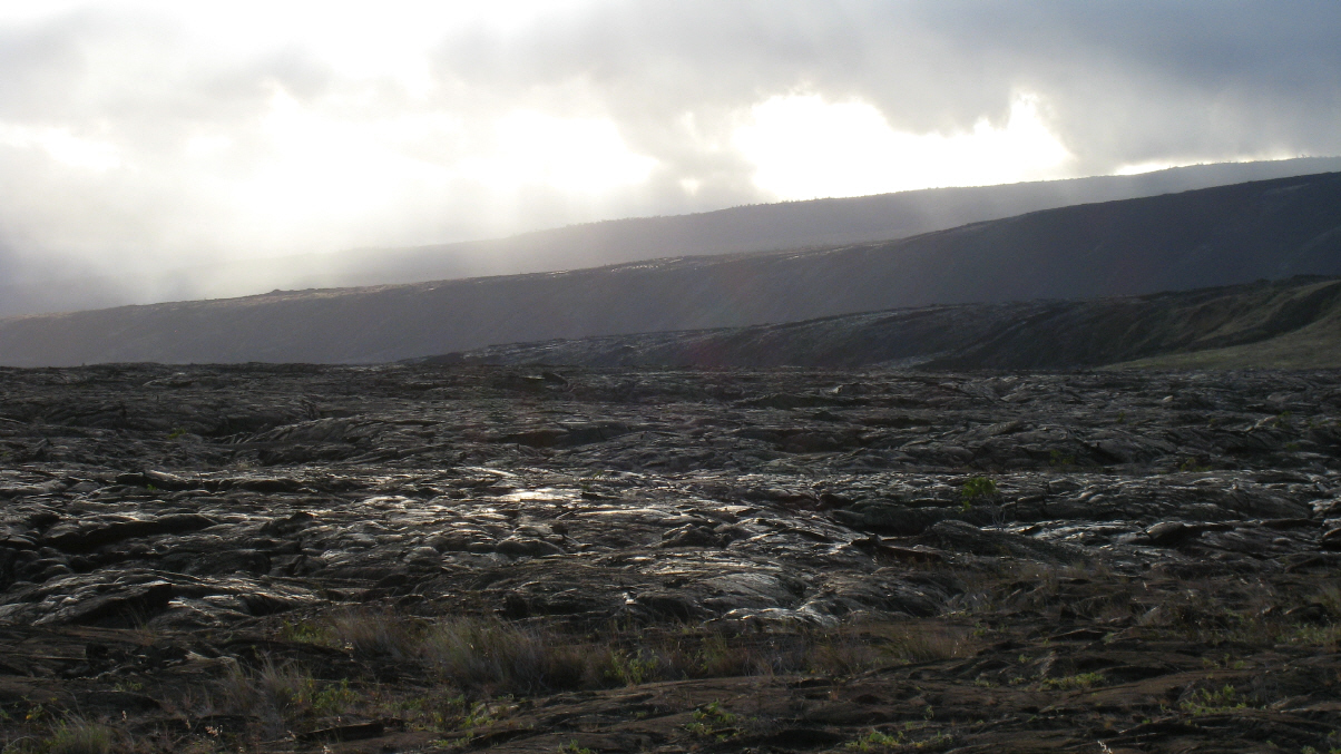 Auf Hawai'i (namentlich Big Island), da ist noch vor zwei Jahrzehnten ein ganzes Dorf von der glühenden Walze der Lava überrannt worden. Wir können noch die Verkehrsschilder oder Autodächer aus der Erstarrung herausragen sehen.