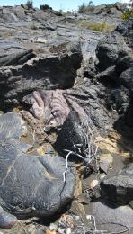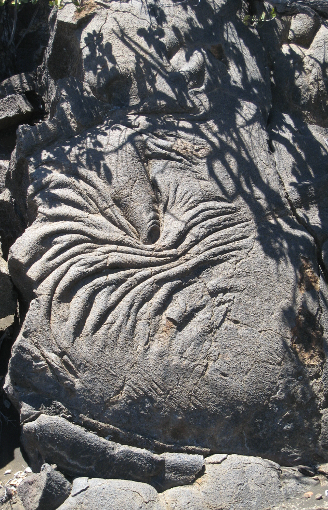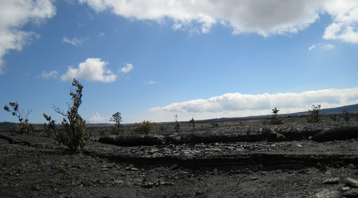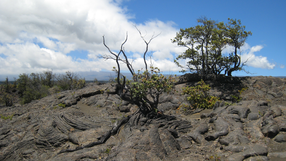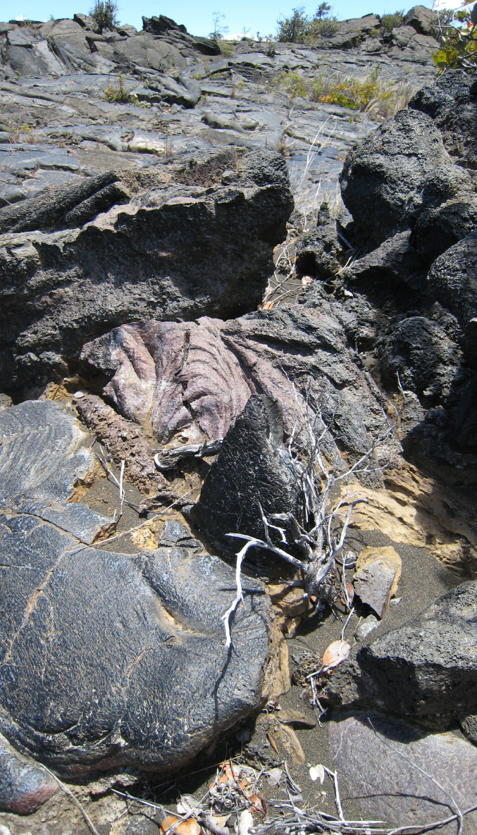 Auf Hawai'i (namentlich Big Island), da ist noch vor zwei Jahrzehnten ein ganzes Dorf von der glühenden Walze der Lava überrannt worden. Wir können noch die Verkehrsschilder oder Autodächer aus der Erstarrung herausragen sehen.
