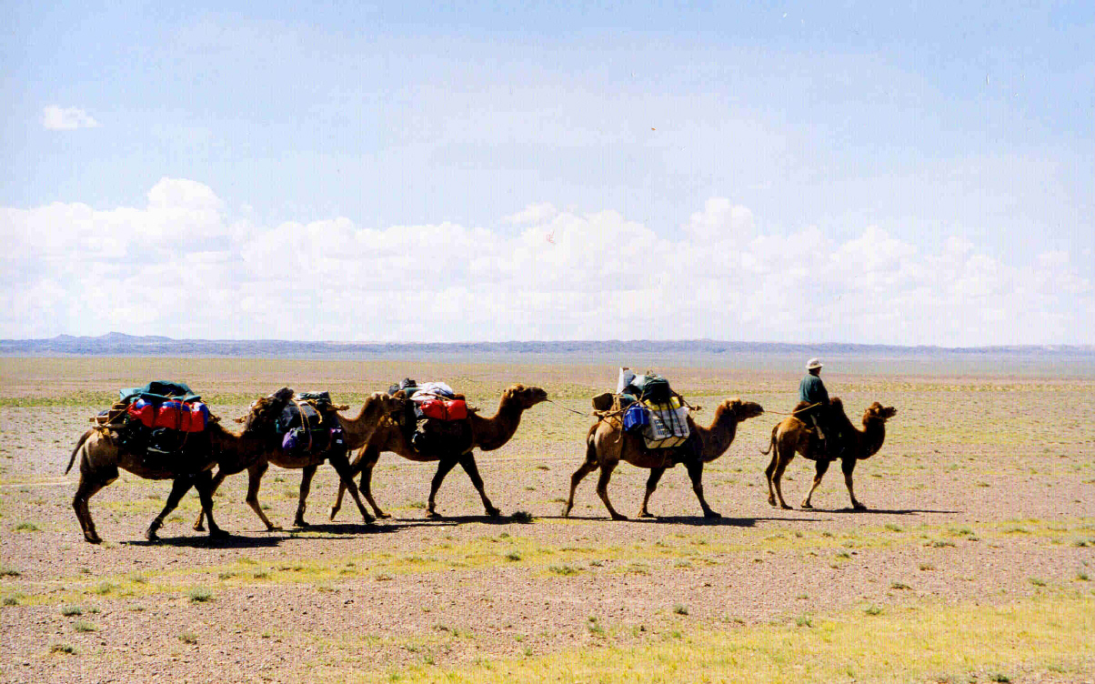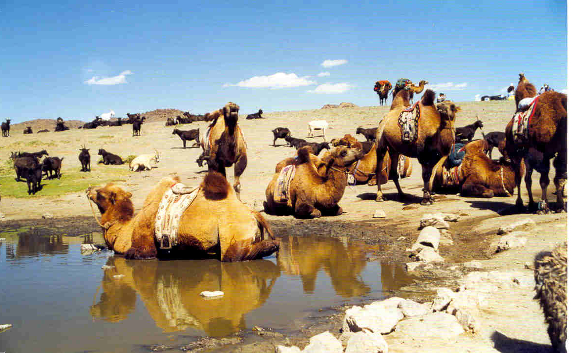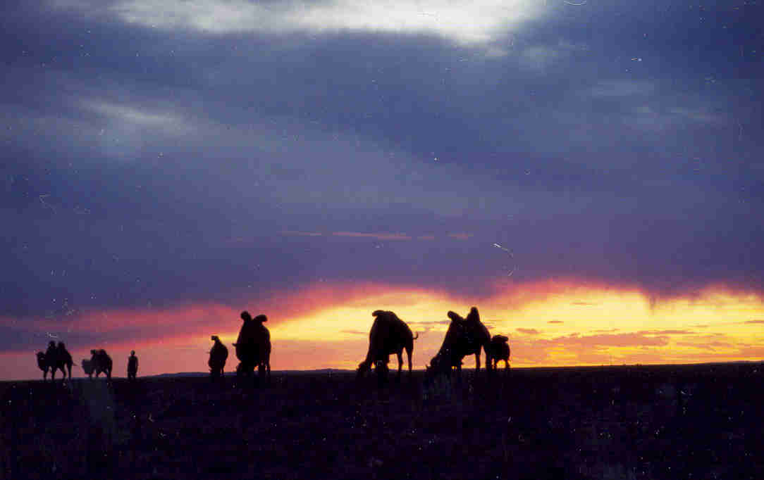 'Schuschu' und 'Ammun' haben uns hervorragend durch ihr Land getragen. Kamele zählen wirklich zu den letzten Säugetier-Dinosauriern, denn wer einmal beobachtet hat, welche mentalen Anstrengungen diese Tiere vollbringen müssen, wenn sie dem Befehl des Hinsetzens nachkommen sollen, der bemerkt, daß der Weg von den Hinterbeinen zum Kopf wirklich recht lang ist.